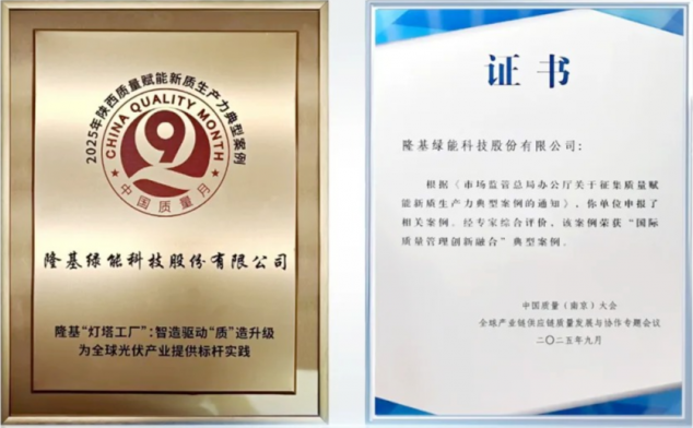 近日,在第六届中国质量(南京)大会上,隆基绿能凭借在制造业质量管理融合创新方面的深度实践与卓越成果,荣获“国际质量管理融合创新典型案例”国家级奖项。
