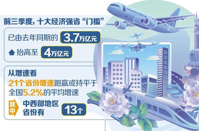 前三季度十大经济强省“门槛”跃上4万亿元台阶——地区经济发展韧性进一步彰显
